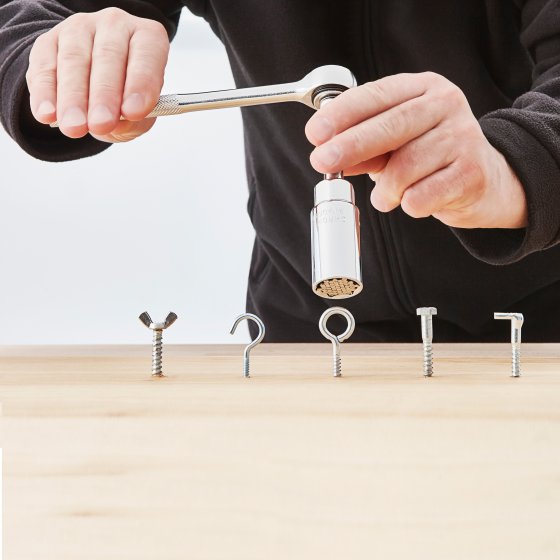 “Einzigartige Möglichkeit Schraubhaken mit einer Knarre einfach einzuschrauben.”