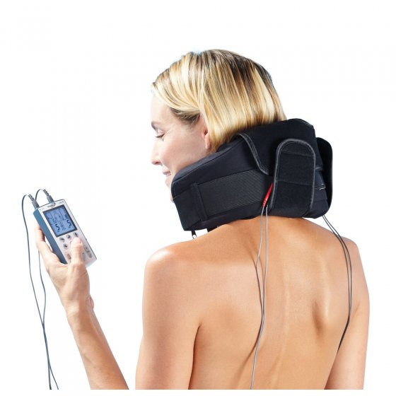Les migraines et les douleurs dorsales sont souvent dues à la tension. La collerette pour appareils TENS stimule les muscles et élimine la cause des douleurs. Taille universelle avec fermeture auto-agrippante. 4 électrodes (L x l : 45 x 20 cm) fonctionnant à raison de 2 par canal de l'appareil Tens. Poids : 180 g. Dimensions (L x l x H) : 5,3 x 1,4 x 0,7 cm. Matière : plastique, PES, nylon, silicone, métal. Couleur : noir.