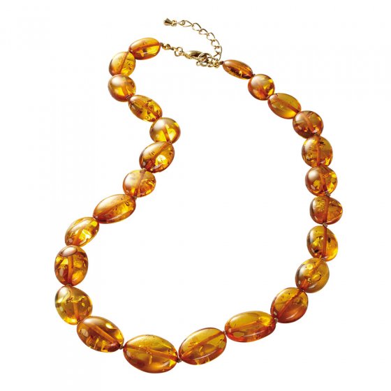 Pratiquement aucune autre pierre n'a autant à "raconter" que l'ambre : la résine fossile fascine les hommes depuis des millénaires, notamment par les petits animaux ou fragments végétaux qui y sont emprisonnés. Chaque COLLIER D'AMBRE est un modèle unique ! Sur ce collier, les pierres en formes de haricots sont alignées par ordre de grandeur sur un fil de soie. Bien que le collier mesure 45 cm de long (+ env. 5 cm d'extension possible), il ne pèse que 20 g env. : vous le sentez à peine à votre cou. Il est livré dans un étui avec un certificat d'authenticité. Un bijou aussi riche d'histoire est un bijou rare !