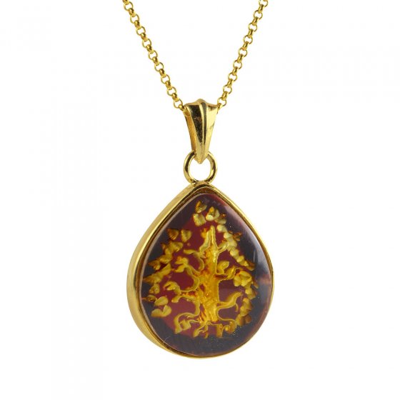 Dans la mythologie, l'arbre de vie est le symbole de l'harmonie et de la force vitale. Le fascinant COLLIER D'AMBRE "ARBRE DE VIE" représente cet arbre sur un bijou précieux ! Le pendentif de couleur cognac, taillé en cabochon, est soigneusement gravé à la main et enchâssé. Chaque ambre est unique - un cadeau exquis et symbolique, pour une personne qui le mérite. Dimensions du pendentif (H x L x P) : env. 3 x 2 x 3,5 cm ; longueur de la chaîne env. 45 cm + 5 cm de rallonge. En véritable argent sterling 925 avec dorure. Livré dans un coffret cadeau, avec son certificat d'authenticité. Un magnifique bijou pour souhaiter à une femme d'exception beaucoup de bonheur et une longue vie !