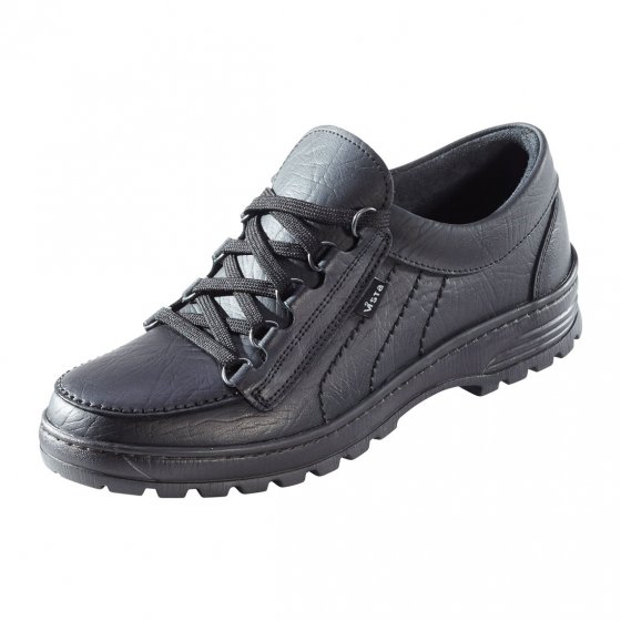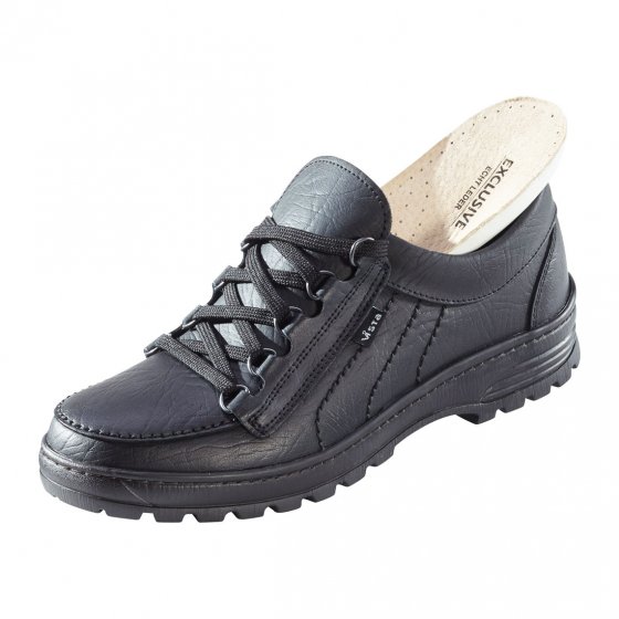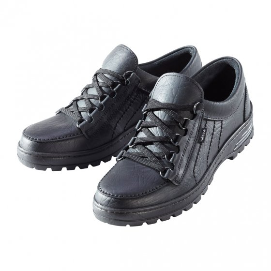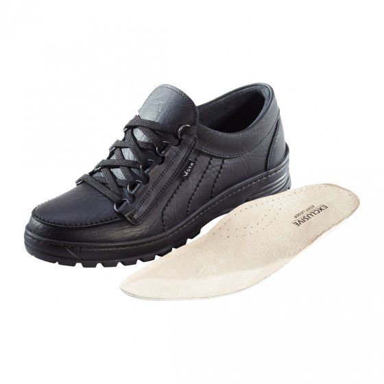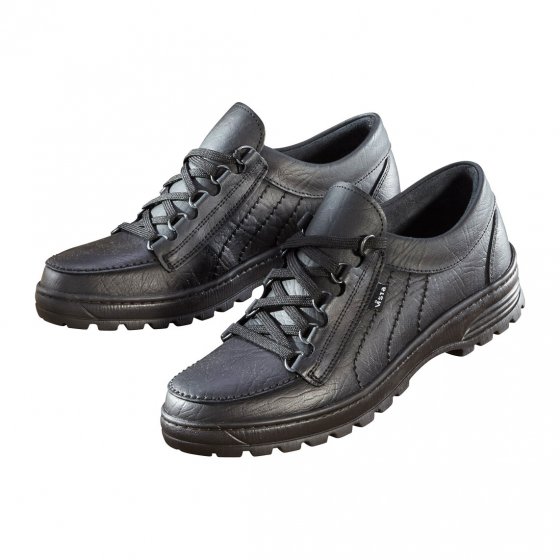 Deze COMFORT-VETERSCHOENEN stappen lichtvoetig door over hobbels en kuilen! Daarvoor zorgen een zeer elastisch voetbed van natuurlijke latex en een shock-absorber in de zool: je loopt met flair en de voet rolt comfortabel af. Schokken naar de wervelkolom en de gewrichten worden effectief opgevangen. Deze sportieve veterschoenen zijn gemaakt van robuust, fijngenerfd rundleer. De binnenzool en de voering zijn van leer. De solide gripzool van kunststof garandeert een goed bodemcontact. Zacht verdikte schachtranden en een veter-snelsluiting met metalen passanten maken het comfort perfect. De ideale schoenen voor mannen die kilometers maken!