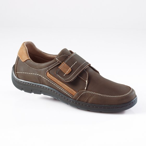 Deze COMFORTABELE KLITTENBANDSCHOENEN zijn perfect voor alle gelegenheden. Met klittenband kunt u de wijdte individueel aan uw voet aanpassen. Het zacht verdikte (vervangbare), comfortabele voetbed zorgt ervoor dat u met verende tred loopt. Waar de automobilisten onder ons bijzonder blij mee zullen zijn: de stroeve kunststofzool is aan de achterkant verhoogd en beschermt het leer tegen slijtage. De schoenen van zacht nubuckleer hebben zachte randen en een leren voering. De doorgestikte buitenzool is zeer flexibel en het lage gewicht zorgt voor een hoog loopcomfort.