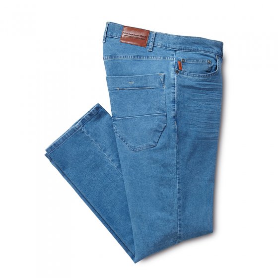 Hoe slim deze COMFORTABELE STRETCHBAND-JEANS in elkaar zit, weet alleen u. Want door zeer discrete elastische verwerking opzij past de bandwijdte zich automatisch als ’op maat’ aan: de broek ligt altijd glad op de buik, zonder kreukels. Dankzij een stretchreserve tot 6 cm in de band knelt niets: ideaal tijdens het reizen, het autorijden - of wanneer u lang aan tafel zit. Bovendien zorgt de elastische denimkwaliteit van 98% katoen en 2% elastan ervoor, dat u zich in deze jeans heel comfortabel beweegt. Hij heeft een sportief five-pocketsmodel en biedt ook een veiligheidszak. De doordachte kleur is geschikt voor vele gelegenheden en laat zich gemakkelijk combineren.