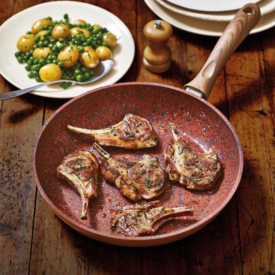Ontdek de Copper & Stone pan van Livington, de pan die bakken een geheel nieuwe dimensie geeft! Dankzij de 7-laagse constructie van robuust staal, koperen deeltjes en een solide aluminiumkern staat deze pan garant voor een zeer snelle en gelijkmatige warmteverdeling. En met de innovatieve 3-laagse antiaanbaklaag kunt u bakken zonder vet of olie. Voor perfect gegaarde steaks, malse vis of knapperige groenten zonder dat deze aanbranden. De elegante handgreep in hout-look blijft koel en zorgt voor een stevige grip. Met deze pan maakt u makkelijk gezonde, smakelijke gerechten!