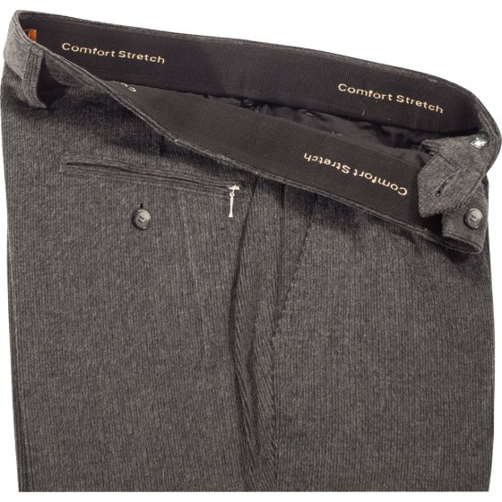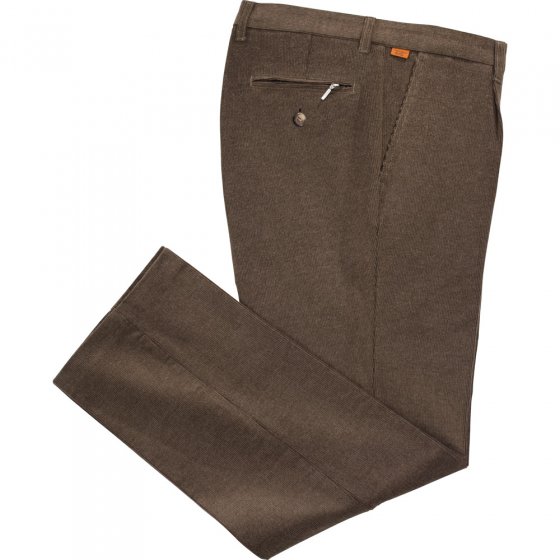 Deze sportieve maar toch elegante CORUDROY BROEK IN FLANELOPTIEK van fijne melange garen: geeft haar de nieuwe, unieke fluweelzachte en gezellige uitstraling! En zo gezellig als de broek in klassieke plooien vorm eruitziet, zo goed draagt ze ook. De huidvriendelijke stof is in de lengte elastisch, duurzaam en comfortabel ongevoelig. Een comfortabele stretch tailleband, twee steekzakken en twee achterzakken (één met knoop en een rits) complete comfort. Stootband aan zoom. Robuuste kwaliteit 55% katoen, 30% polyester, 12% polyamide, 3% elastaan, wasbaar in de machine. Deze winter broek van topkwaliteit bieden wij aan in twee tijdloos mooie, sterke combinatorische kleuren!