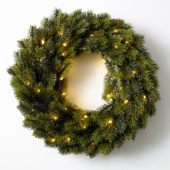 Dedans ou dehors, à la porte d’entrée ou dans le séjour : la belle COURONNE DE NOËL À LED, faite de branches de sapin artificielles, est un superbe accessoire d’hiver. Il ressemble à s’y méprendre à du sapin véritable et tient éternellement. Orné de 49 LED blanc chaud, il diffuse une lumière d’ambiance au crépuscule et pendant la soirée. Le minuteur allume et éteint automatiquement l’éclairage LED. Fonctionne avec trois piles AAA (vendues séparément). Dimensions (Ø) : env. 40 cm.
