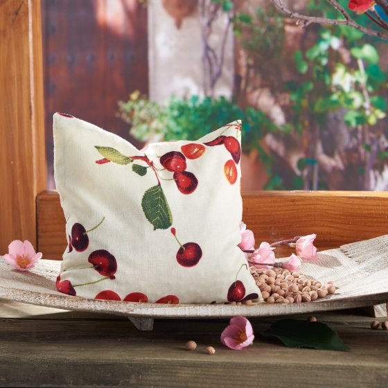 Avec un motif si sympa, vous n’aurez pas envie de cacher le coussin aux noyaux de cerise dans le placard. Chauffez-le simplement au four ou au micro-onde et savourez des moments de détente agréables ! Housse : 100 % coton. Dimensions : 19 x 19 cm.