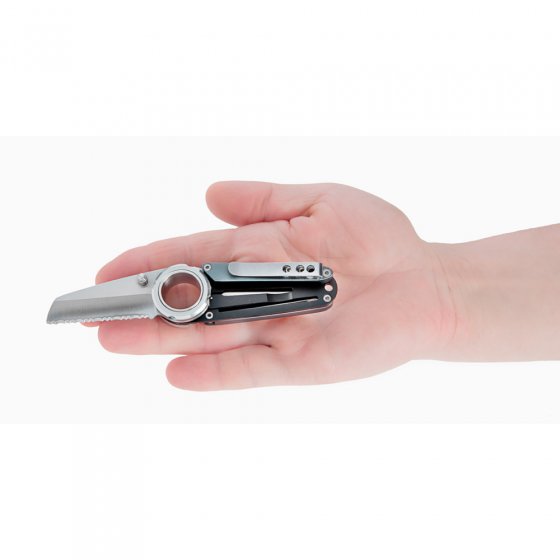 Lorsque vos amis vous demanderont d’un air perplexe ce que ce canif a de plus que les autres, vous allez les surprendre ! Lorsqu'il est replié, ce COUTEAU A DOUBLE LAME ressemble à n’importe quel canif normal... Sa particularité réside dans son manche en aluminium et il ne tient qu’à vous de lever le mystère ! Ce couteau dispose en effet de non pas une lame, mais deux, ce qui le rend ultra polyvalent et tout simplement doublement ingénieux ! Les deux lames sont fabriquées en acier 440 (également appelé acier chirurgical). Avec sa lame lisse et sa lame crantée (d'env. 5 cm de long chacune), il est le compagnon idéal pour la pêche, le camping et toutes vos activités en extérieur. Et grâce à ses dimensions compactes (fermé, il ne mesure qu’environ 9 cm), il tient dans une poche ou dans la boîte à gants de votre véhicule. Son manche en aluminium équipé d’un anneau de préhension tient parfaitement bien dans la main. Avec cran d’arrêt et attache-ceinture. Un couteau de grand valeur, doublement à votre service !