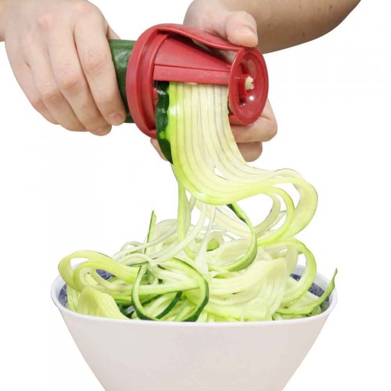 Transformez les plats de légumes de tous les jours en créations artistiques et savoureuses ! Notre couteau spirale « Vegitrim » permet de réaliser en un tour de main des nouilles de courgettes, de belles spirales de carottes, et bien plus encore – sans électricité. Idéal pour les cuisiniers créatifs et les fins gourmets. Le design ergonomique offre une bonne prise en main, les lames coupent avec précision et sans effort. Avec ce couteau, l’alimentation saine est une expérience riche en couleurs !