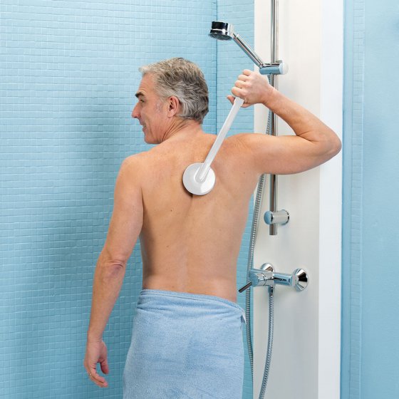 De praktische crème-applicator is gemakkelijk te vullen met uw favoriete verzorgingsproduct en u kunt crème op uw rug of schouders aanbrengen zonder enige hulp van anderen. De zachte massagerollers geven een aangenaam tintelend gevoel. De licht gebogen handgreep maakt de toepassing bijzonder comfortabel. Stevig ontwerp. Materiaal: kunststof, afmetingen (l): 45 cm.