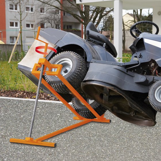 Pour manipuler les "poids lourds" en toute facilité, servez-vous de ce CRIC LÈVE-TONDEUSE robuste capable de soulever jusqu’à 400 kg sans problème. L’inclinaison réglable en continu permet de réaliser les opérations d’entretien, de réparation ou de nettoyage rapidement et sans risque. Le lève-tondeuse se distingue par sa grande stabilité au sol. Il est pliable et peu encombrant quand vous n’en avez pas besoin. Un accessoire pratique non seulement pour les tondeuses, mais aussi pour d’autres véhicules comme les quads jusqu’à une largeur de voie de 105 cm. Dimensions replié (l x P x H) : env. 123 x 50 x 12 cm. Facilitez-vous tous les travaux lourds !