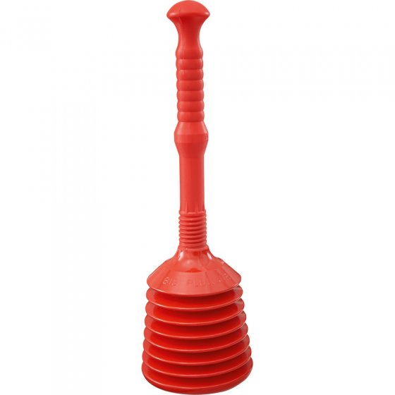 Les canalisations de vos WC sont bouchées ? Inutile d'appeler un plombier ou d'avoir recours à des produits chimiques : utilisez plutôt notre DÉBOUCHEUR WC TURBO ! Contrairement aux ventouses classiques, ce déboucheur Turbo Rohrfrei n'aspire pas le bouchon, mais le pousse au moyen d'air comprimé depuis vos canalisations étroites jusqu'à la descente plus large. Et contrairement au débouchage par cartouche d'air comprimé, vous ne risquez pas d'endommager vos canalisations en appliquant une pression trop forte. Pour la cuisine, la salle de bain (douche/baignoire) et les toilettes. Dim. Ø env. 15,5 cm, longueur env. 50 cm. Libérez vos canalisations rapidement, sans chimie et en prenant soin de vos canalisations !