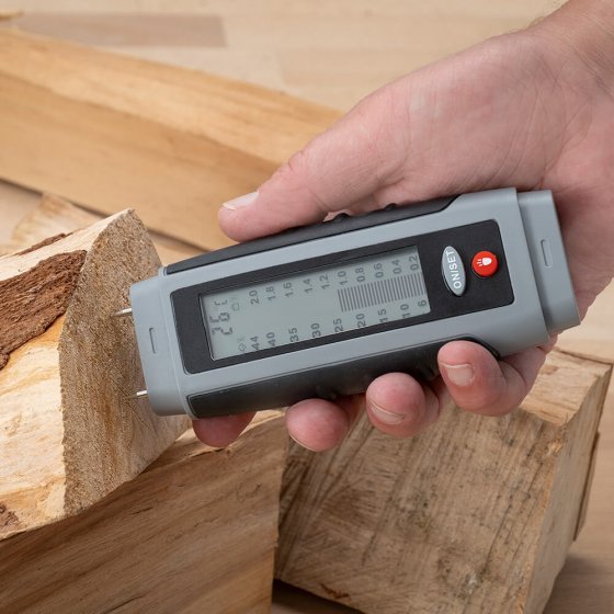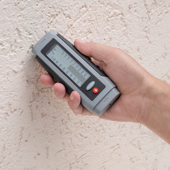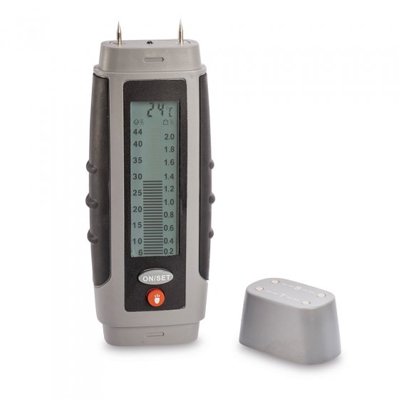 Le plâtre est-il déjà sec ? Le bois de cheminée est-il humide ? Le DÉTECTEUR D'HUMIDITÉ vous renseigne en quelques secondes sur le degré d'humidité des murs, des meubles ou du sol ! Il suffit pour cela d'enfoncer légèrement les fines pointes métalliques dans le matériau à tester. Les mesures sont affichées sur deux échelles parallèles (une pour le bois, le carton et le papier, et l'autre pour les murs, le béton et le plâtre). L'appareil mesure en outre la température ambiante et une lampe à LED éclaire les endroits sombres sur pression d'un bouton. Fonctionne avec deux piles AA (vendues séparément). Dimensions (l x L x P) : env. 6 x 15 x 4 cm. Ainsi équipé, vous savez toujours le degré d'humidité des matériaux solides !