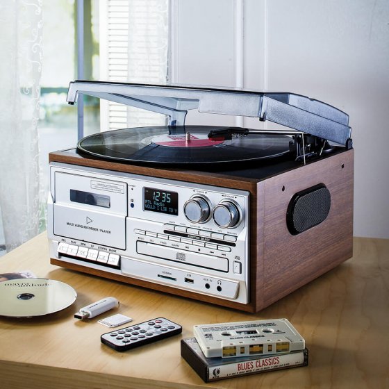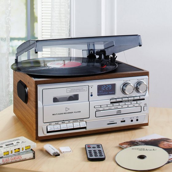 “Als Kompaktanlage nur zu empfehlen, hier ist alles da: FM/DAB+-Tuner, Plattenspieler, CD, USB-Anschluss, SD-Schacht und Cassette, Überspielmöglichkeiten aller Art - auch mit Fernbedienung ”