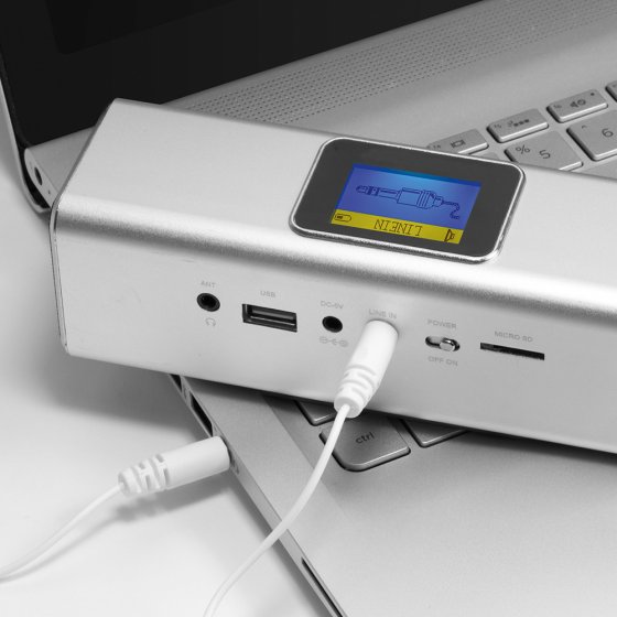 Bij het thuiswerken, wanneer u ontspannen op uw balkon zit of bij het barbecueën op het terras is wat muziek niet verkeerd, toch? Met het mobiele DAB+-STEREO-MUZIEKSTATION hebt u geen stopcontact nodig, want het station zorgt met de beide luidsprekers (2 x 3 W RMS) overal voor een mooi stereogeluid. U kunt kiezen uit radio-ontvangst (DAB+, FM) of het afspelen van opgeslagen audio-gegevens (van de USB-stick of een microSD-kaart). Ook uw telefoon kan met de bluetooth®-verbinding dienen als geluidsbron. Afmetingen (b x h x d): ca. 17 x 5 x 5 cm. Werkt op accu (verwisselbaar), op te laden via USB-kabel (meegeleverd). Zorg voor wat muziek, waar u dat maar wilt.