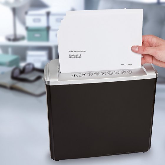 “Man sollte möglichst nur 1-2 Blätter im A4-Format in den Vernichter einstecken. Bei kleineren Formaten kann es vorkommen, dass das Papier schräg eingezogen wird und dann der Durchlauf stockt. Geduld beim Schreddern ist zu empfehlen. ”