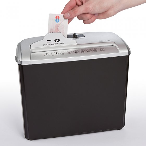 - Elle déchiquette le papier, les CD, DVD et cartes bancaires