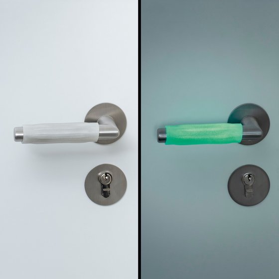 Heeft u ooit een onaangename elektrische schok gekregen bij het openen van een deur? Dat is verleden tijd met deze DEURKRUKBESCHERMING MET VERLICHTINGSFUNCTIE, verkrijgbaar als set van 4, die elektrostatische ontlading voorkomt. Daarnaast is hij ook nog eens enorm handig, want de beschermers die om de kruk heen zitten hebben fluorescerende componenten die oplichten in het donker, dit maakt het voor u gemakkelijker om 's nachts uw weg in huis te vinden. Omdat de deurkrukbescherming koude- en hittebestendig is, kunnen de beschermers ook buiten worden bevestigd. Afmetingen per stuk (l x b x h): ca. 9 x 3 x 2 cm. Optimaliseer uw deurkrukken!