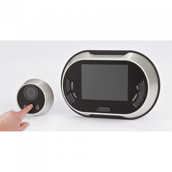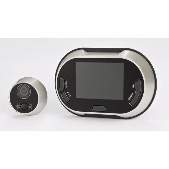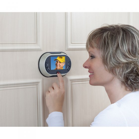 Uw nieuwe portier neemt iedereen op de foto, die bij u aanbelt! Inbrekers bellen eerst om te controleren of iemand thuis is. Maar ze hebben geen idee: Deze geavanceerde DEUR SPIONCAMERA MET BEL houdt automatisch met datum en tijd in de foto vast, wie aangebeld heeft. En zonder flits of lawaai en zelfs in uw afwezigheid! U bent altijd “in beeld” en zorgt bij nood aan de Politie belangrijke informatie. Wanneer iemand op de deurbel drukt, wordt een foto genomen, en het kleur scherm op de binnenzijde schakelt aan. Bent u thuis, kunt u gemakkelijk zien of u wilt opendoen. Zeer eenvoudig te installeren, zonder boren of schroeven: Gemakkelijk om de bestaande spion te vervangen en het weergave-element aan te sluiten. Aangedreven door 3 AA batterijen (apart verkrijgbaar). Een nieuwe veiligheidsmaatregel, om bij te houden wat er is aan uw deur!