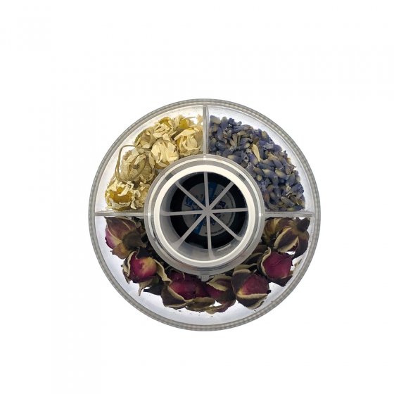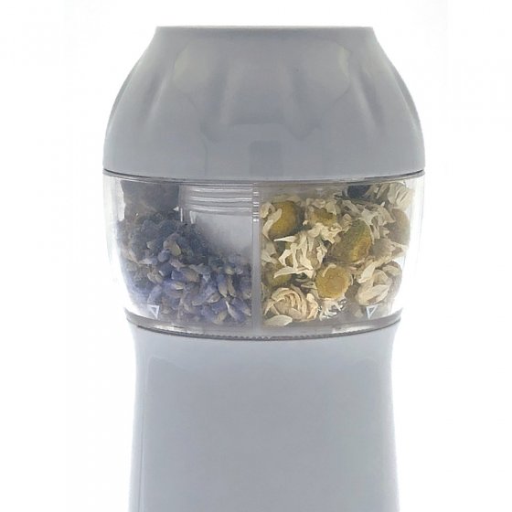 Vous vous sentez particulièrement à l'aise dans une pièce qui sent bon. Le diffuseur de parfum illuminé Harmony est équipé de 3 chambres d'arômes sélectionnables séparément et de 2 vitesses. Simplicité d'utilisation. Fonctionnement via transformateur USB et piles (fournies). Dimensions (L x l x H) : 7,2 x 7,2 x 20,2 cm. Coloris : Grau.