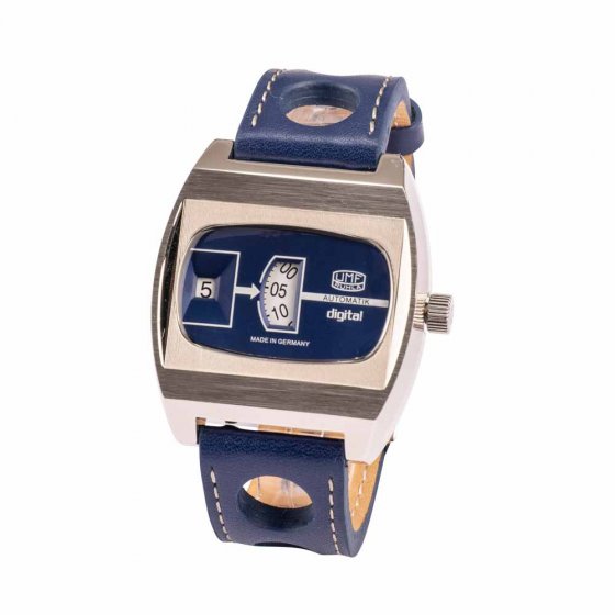Het digitale schijfhorloge met verspringende uuraanduiding van UMF Ruhla is meer dan alleen een tijdsaanduider; het is een meesterwerk dat de horlogekunst van vroeger combineert met de technologieën van vandaag. De nauwkeurige techniek, gecombineerd met het nostalgische design uit de jaren 70, maken het een gewild object voor verzamelaars en horlogeliefhebbers. Maak deel uit van dit bijzondere project en bemachtig uw exemplaar van de heruitgave van 'Jumping Hour' – een waar meesterwerk dat geschiedenis schrijft.