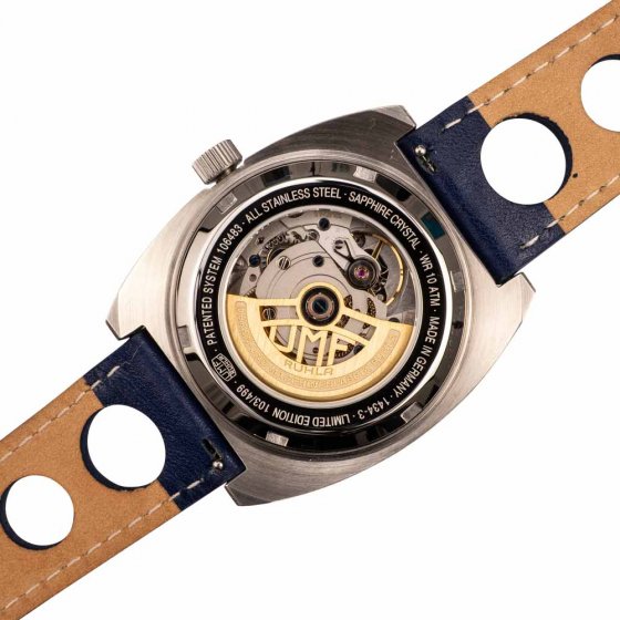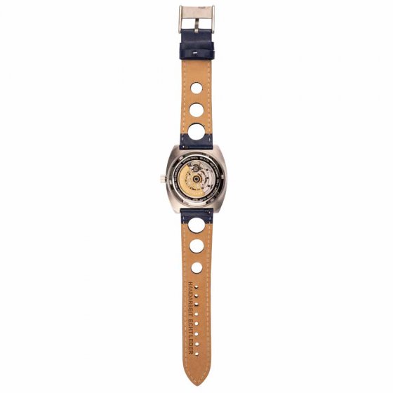 - Verspringend uurwerkmechanisme: het unieke verspringende uurwerk maakt van dit horloge een bijzonder hoogtepunt