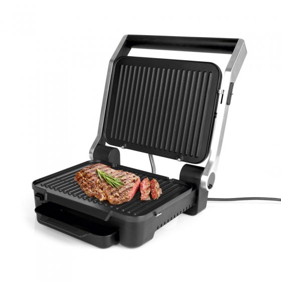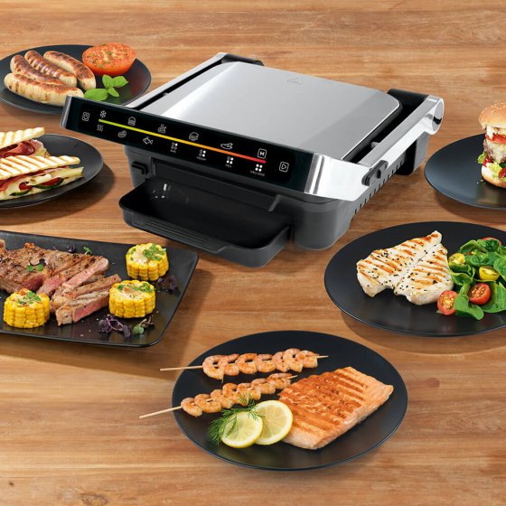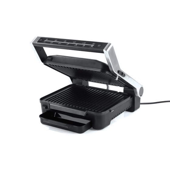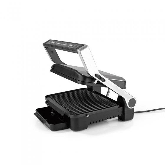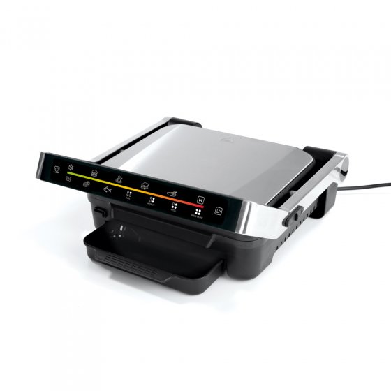 Hoe vaak lukt het u het perfecte gaarpunt te bereiken? Van nu af aan altijd! Deze DIGITALE CONTACTGRILL ’SMART’ met 6 vaste programma’s barbecuet vis, gevogelte, groente, burgers en meer op de perfecte temperatuur. Zelf de gewenste garing (rare, medium, done, well done) stelt u eenvoudig in. Via de led-statusweergave volgt u het gehele gaarproces. Met schuin grilloppervlak en vetopvangschaal voor gezond grillen – gemakkelijk schoon te maken! Afmetingen (b x h x d): ca. 36 x 18 x 35 cm. Werkt op 230 V / 2000 W. Naar keuze ook handmatig te bedienen. Zo treft u garandeert altijd de goede smaak – en die van uw gasten.