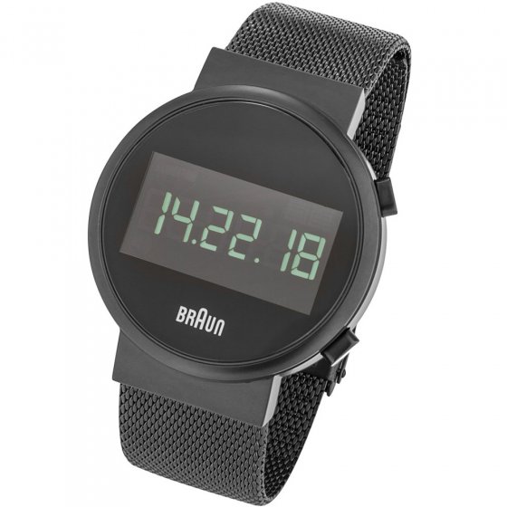 Voor een lange tijd was het cult object onder de pols horloge’s van het toneel verdwenen. Het Duitse bedrijf BROWN brengt het nu terug. De nieuwe DIGITAL RADIO HORLOGE "BRUIN" is een waardevolle klok en tegelijkertijd een opvallende eye-catcher . Onovertroffen technologie in combinatie met eenvoudige elegantie. Uitgerust met een multi-band radio-ontvanger toont altijd de meest accurate tijd - ongeacht waar u zich ook bevindt in de wereld. De horlogekast is net als de slanke Milanese armband gemaakt van hoogwaardig roestvrij staal en mat zwart geanodiseerd. Onder het krasbestendig saffierglas wordt op digitale wijze duidelijk aangegeven ofwel de tijd of datum.. Met een druk op de knop wordt het ook verlicht in het donker. 5 ATM proefdruk, afmetingen ongeveer 40 mm doorsnede Verkrijg de ooggetuigen van de jaren 1980 - een must voor elke horloge liefhebber! Multi-band radio-ontvanger: horloges die werden gebouwd voor het Europese signaal, werken niet in de VS en vice versa. Men heeft voor elke ander tijdsignaal een ander horloge nodig. De MULTI-BAND RADIOGRAFISCHE ONTVANGER verandert dit . Horloges met deze radio-ontvanger zijn in staat om signalen die worden verzonden vanuit Fort Collins in Colorado te ontvangen, via meerdere standplaatsen van de overheid. Deze signalen hebben betrekking op alle vier de tijdzones in de Verenigde Staten. Andere locaties zijn in Anthorn, UK (bestrijkt het hele land), Mainflingen, Duitsland (dekt het grootste deel van West-en Centraal-Europa ) en Kyushu Island, Japan (dekt de meeste delen van Japan en Korea).