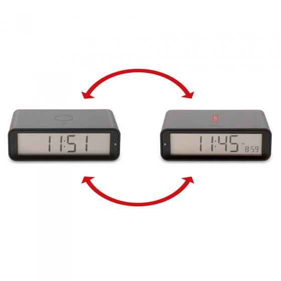 Met de DIGITALE WEKKERRADIO 'TWIST' kunt u het weksignaal gemakkelijk activeren: draai gewoon de behuizing om! Het display draait mee; de wektijd staat rechtsonder voor de duidelijkheid. Weer omdraaien heeft het tegenovergestelde effect: het alarm gaat weer uit. Eenvoudiger kan niet! Ook kan het niet nauwkeuriger, want de wekker heeft een geïntegreerde DCF77-ontvanger voor tijdsignalen. Natuurlijk beschikt hij ook over een sluimerfunctie, die u kunt activeren door kort op de behuizing te drukken. Afmetingen (bxhxd): ca. 12 x 4 x 7 cm. Werkt op 2 AA-batterijen (apart verkrijgbaar). U zult het snel onder de knie hebben, gegarandeerd!