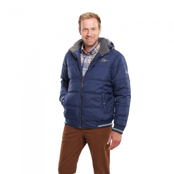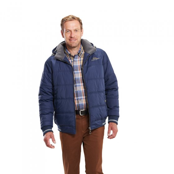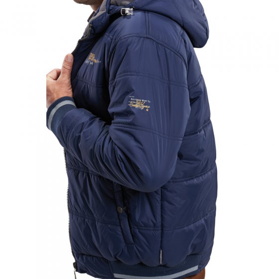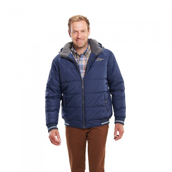 De DOORGESTIKTE BLOUSON ziet er zo stoer en mannelijk uit als dat bij een goede blouson moet zijn, en is perfect om buiten te dragen. Voor de overgang naar het koude weer is de blouson uitgevoerd met een warme wattering en een voering van zachte fleece, ook in de kraag en in de (afneembare) capuchon. Het exemplaar is hoog te sluiten en heeft door de elastische gebreide boord aan de mouwen en onderlangs de perfecte pasvorm. De blouson heeft op de borst en de mouwen een borduursel en is voorzien van 2 steekzakken met drukknoop en 1 binnenzak met rits. Heel comfortabel: de tafvoering in de mouwen. Buitenkant 100% polyamide, voering en wattering van 100% polyester.