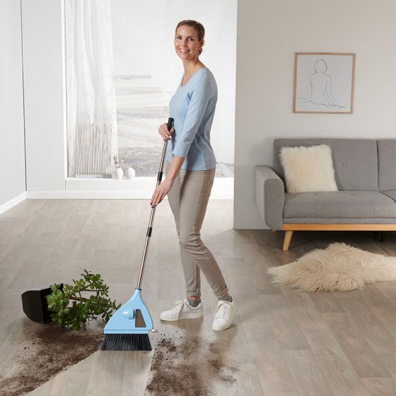 Het vuil op de vloer snel opvegen, dat is geen probleem. Maar dan? De DRAADLOZE STOFZUIGBEZEM bespaart u bukken met een stoffer en blik. In plaats daarvan hoeft u alleen maar een schakelaar met uw voet te activeren en het opgeveegde vuil verdwijnt onmiddellijk in de opzuigbuis van de bezem, zonder lelijke stoflijnen op de vloer achter te laten! Leeg later eenvoudig de opvangbak boven de afvalbak. Doordat de stofzuiger op batterijen werkt, zitten er geen kabels in de weg bij het vegen. Afmetingen (l x b x d, met steel): ca. 140 x 27 x 9 cm. Gaat sneller dan stofzuigen en is plezieriger voor de rug dan opvegen!