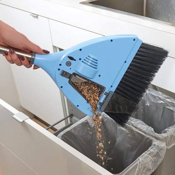 Geen blik nodig: deze bezem veegt en zuigt op!