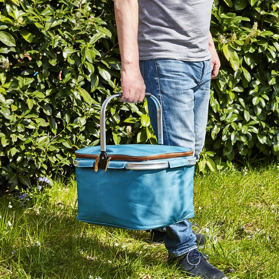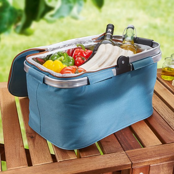 Bij zomerse temperaturen worden koude dranken en ijsverpakkingen snel warm, dus in aluminiumfolie wikkelen zal niet helpen. Wat in plaats daarvan helpt, is alles bewaren in de DRAAGBARE KOELMAND: dankzij een thermische isolatielaag aan de binnenkant blijven voorgekoelde levensmiddelen superlang koud - net als in een koelkast. De opvouwbare houder heeft een inhoud van 23 liter en kan worden gesloten (rits). Het stevige aluminium frame met draaggreep maakt het gemakkelijk om flessen, kommen en andere zware voorwerpen te vervoeren. Afmetingen (l x b x h, zonder handvat): ca. 46 x 29 x 26 cm. Houd het koel - en gebruik de koelmand bij het picknicken, winkelen en barbecueën!