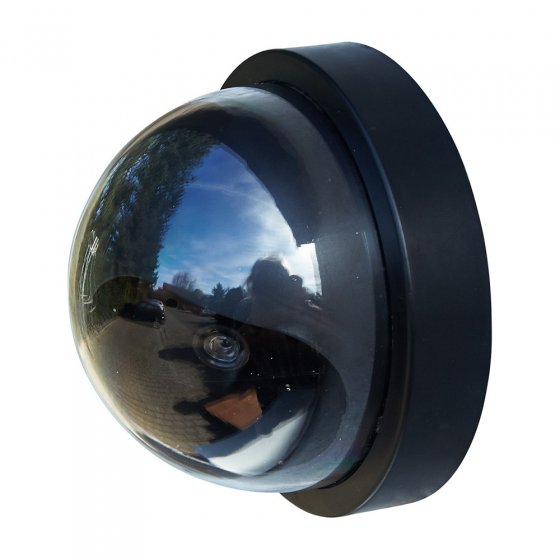 Verras potentiële inbrekers, en schrik ongenode gasten effectief af! Deze uiterst realistische DUMMY CAMERA MET BEWEGINGSSENSOR is vrijwel niet te onderscheiden van een origineel. Door de sensor wordt het knipperende rode LED geactiveerd zodat de camera er nog echter uitziet. Werkt op batterijen (AA-batterijen apart verkocht), kan overal worden geplaatst. Schroeven en pluggen voor montage aan de muur of het plafond zijn inbegrepen. Slagvaste kunststof, Afmetingen: 7 x Ø 12 cm. Een slimme veiligheidsmaatregel met een onvergelijkbare prijs/kwaliteitverhouding!