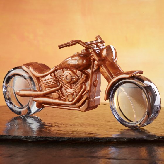 Dat ruikt naar avontuur: in de wielen van deze originele EAU DE PARFUM 'RETRO-BIKE' schuilen twee mannelijke geuren die zorgen voor opwindende momenten. Overdag laat u met bergamot, chili en leer uw goede smaak zien en 's avonds heeft u een onweerstaanbare aantrekkingskracht met zwarte aalbes, patchoeli en muskus. De gedetailleerde flacon doet denken aan de beroemde American Chopper uit de jaren 60 en 70, waardoor deze geur een onvergelijkbare blikvanger in iedere badkamer is. In het voorwiel bevindt zich de geur voor overdag (30 ml), in het achterwiel de avondgeur (50 ml). Inhoud: ca. 80 ml. Geniet van de vrijheid!