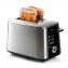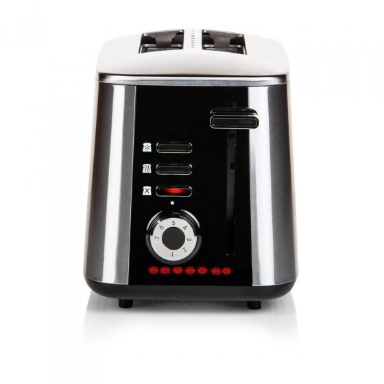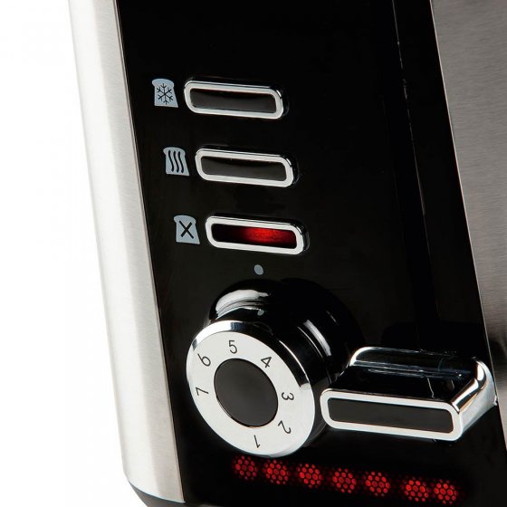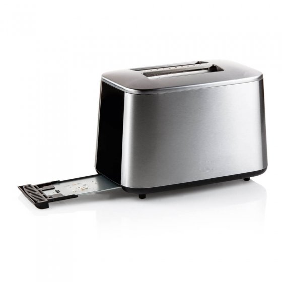 Lang wachten met een lege maag is verleden tijd. Voor alle ontbijtliefhebbers is er de EDELSTALEN TURBO-TOASTER die in recordtijd zorgt voor perfect gebruinde toast. Dankzij het nieuw ontwikkelde platte verwarmingssysteem met 1.600 W in plaats van gebruikelijke 1.000 W is dit model met edelstalen kast en kruimellade 50% sneller dan normale toasters. De countdown-ledstrip verkort de wachttijd. Met de 7 bruiningsgraden, opwarm- en ontdooifunctie creëert u de perfecte lekkernij. De automatische centreerfunctie zorgt voor gelijkmatige bruining, zonder aangebrande hoeken. Wordt zonder opzetstuk voor toast geleverd. Afmetingen (b x h x d): ca. 28 x 20 x 17 cm. Werkt op 230 V. Begin de dag met supersnel genieten.