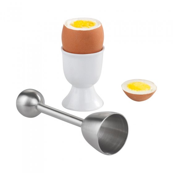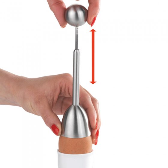 “Man halte den Köpfer auf das Ei, zieht die Kugel nach oben und lässt sie los. So köpfe ich das Ei mit einer präzisen Bruchstelle und kann mit dem Messer das "Kopfteil" locker entfernen. Endlich kein Fummeln mehr. ”