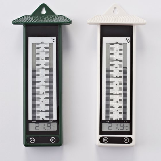 Des températures extérieures très élevées ou très basses ne sont pas si rares que cela, même en France. Et ceux qui habitent sous les combles savent bien que même les températures intérieures peuvent sortir de la "normale" ! C'est là qu'interviennent nos THERMOMÈTRES ÉLECTRIQUES (LOT DE 2) ultra précis à double affichage en barres numérique (températures min./max.). L'écran LCD indique les températures de -40 °C jusqu'à +50 °C, au dixième de degré près. Fonctionne avec 2 piles AAA (vendues séparément). Dim. (L x l x h) : env. 3,5 x 9 x 22, 5 cm chacun. Avec fonction de mémoire (temp. les plus élevées et basses de la journée). Découvrez à quel point il peut faire froid ou chaud chez vous !