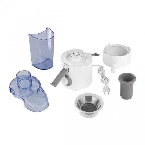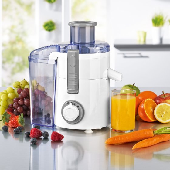 Er is niets zo gezond als geperst fruit- of groentesap – en de zomer leent zich bij uitstek voor sapjes. De krachtig gemotoriseerde ELEKTRISCHE VRUCHTENPERS (250 W) maakt het persen extra gemakkelijk: dankzij twee snelheidsinstellingen en een pulsstand vindt u daarmee zowel voor zachte vruchten als voor appels, peren en wortels altijd de juiste ’gang’ Het resultaat is een extreem hoge sapopbrengst. Vruchtvleesresten en pitten worden door de fijnmazige edelstalen zeef tegengehouden en landen in de extra grote pulpcontainer (300 ml). Werkt op 230 V. Afmetingen (bxhxd): ca. 16 x 29 x 21 cm. Tank vitaminen in vloeibare vorm!