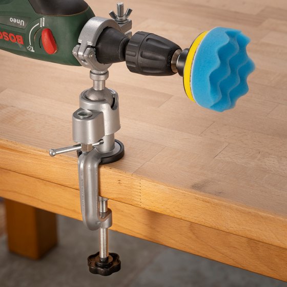 “Der Bohmaschinenhalter ist für deutsche DIN-Mape zu klein, weil die Schraube der Halterung/Schelle zu kurz ist.”