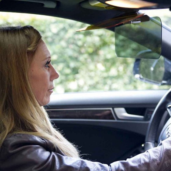 Phares éblouissants, reflets sur la chaussée mouillée, soleil aveuglant : avec l'extension de pare-soleil jour et nuit, vous pouvez remédier à ces conditions difficiles et conduire plus sûrement. Elle consiste en 2 filtres de verre acrylique qui s'inspirent d'une technologie éprouvée de l'aéronautique. La teinte spéciale – gris pour la journée, jaune pour la nuit – assure une vision détaillée, claire et riche en contrastes, même par temps de pluie ou de neige. Et les yeux se fatiguent moins vite. Dimensions des filtres env. 32 x 12 cm. L'extension se fixe par un clip solide sur le pare-soleil de la voiture (aucun outil n'est nécessaire), et se rabat en cas de besoin – pour rouler plus tranquille et plus sûr.