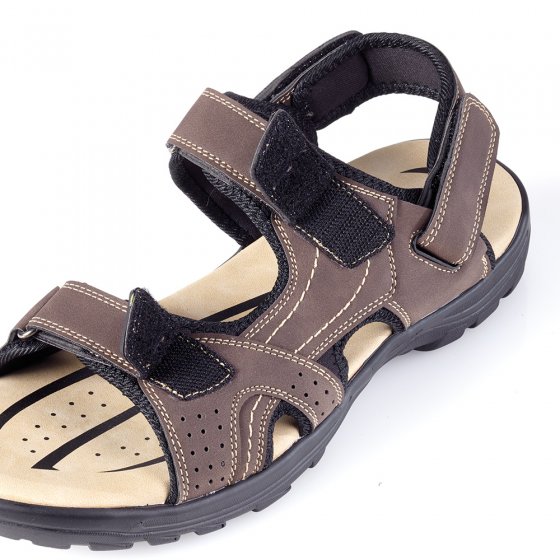 De EXTRALICHTE VRIJETIJDSSANDAAL is de ideale partner voor lange, warme dagen! Wandelen, kuieren in het park, slenteren door de stad: deze sandaal blijft altijd zeer comfortabel aanvoelen. Dankzij de vier klittenbandsluitingen op de wreef en de hiel kunt u de pasvorm precies afstemmen op uw voet. Het gepolsterde voetbed en de voering van textiel zorgen ervoor dat deze luchtige schoen zacht aanvoelt aan de voet. Het gewicht van slechts ca. 220 g en de flexibele, antislipzool van kunststof zorgen ervoor dat u op wolkjes loopt. De onderhoudsvriendelijke schoen van polyurethaan is ook mooi dankzij de kleurrijke combinatie en de sportieve stiksels.