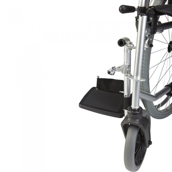 Équipement complet pour un prix attrayant : le fauteuil roulant pliant Dietz "Tokin" est équipé d’un repose-jambes pivotant et amovible ainsi que de repose-pieds rabattables à hauteur ajustable avec cale-talon. Sac au dos. Couleur : argent métallique. Dimensions (L x l x H) : 107 x 63,5 x 91 cm. Matière : acier, PU, aluminium.