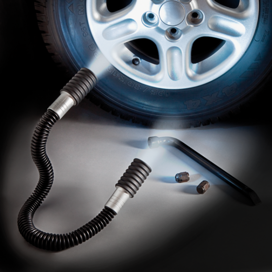 Licht tot in de verste hoeken en toch beide handen vrij, dat kan alleen de FLEX-LED-LAMP“DUO”. Dikwijls is hij (dan) de reddder in de nood – tijdens/bij autoreparaties in het donker, het werken aan moeilijk te bereiken ingebouwde onderdelen en altijd daar, waar u heel precies/gericht licht en beide handen nodig heeft. De slang kan naar eigen goeddunken worden gevormd. U kunt de lichtbron ergens neer zetten of aan een haak, buis etc. ophangen. Beide uiteinden zijn voorzien van een lamp met elk 12 helderwitte top LED’s. Door gewoon te draaien kunnen de lampen afzonderlijk aan- en uitgeschakeld worden. Desgewenst kunnen de lampen ook van de slang worden afgeschroefd - met één draai heeft u een separate LED zaklamp ter beschikking