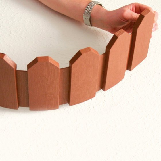 Für die FLEXIBLE BEETEINFASSUNG aus robustem, wetterbeständigem Spezial-Kunststoff benötigen Sie weder Werkzeug noch fremde Hilfe. Einfach die stabilen Erdspieße an der Rückseite in den Boden stecken – schon fertig! Die flexiblen Elemente sehen echtem Holz zum Verwechseln ähnlich und passen sich perfekt jeder Rundung an. Lieferumfang: 4 Stück zu je ca. 59 x 18 cm (Gesamtlänge ca. 2,36 cm), wobei sich das seitl. Stecksystem beliebig erweitern lässt. Die praktische Beeteinfassung bietet zahllose Möglichkeiten – und wertet Ihren Garten enorm auf!