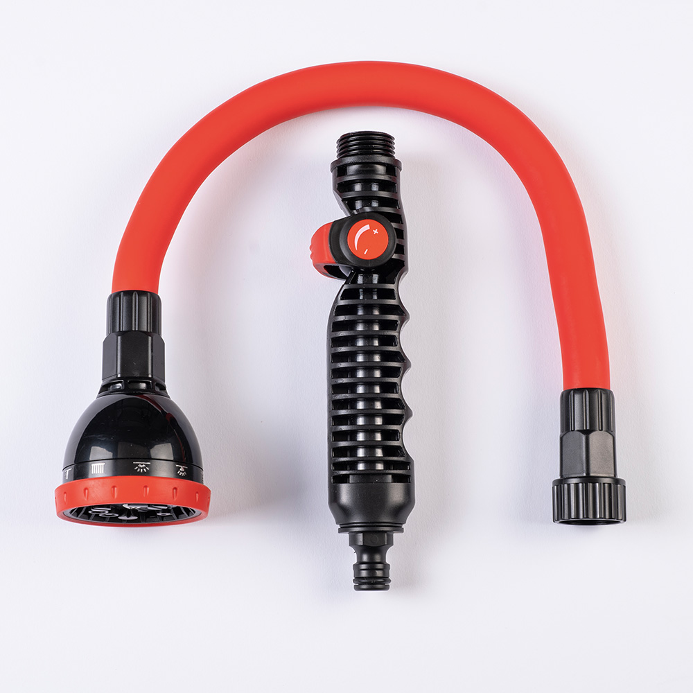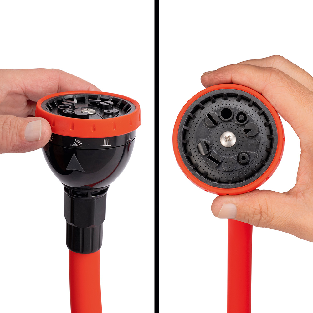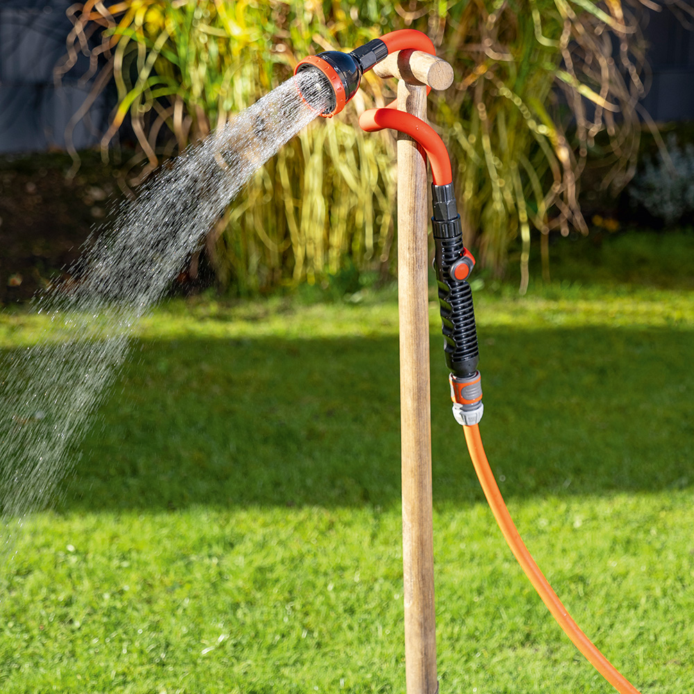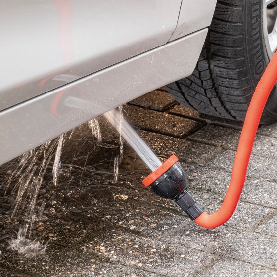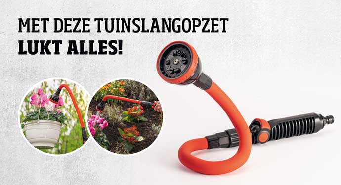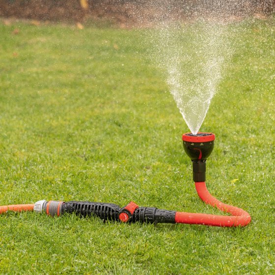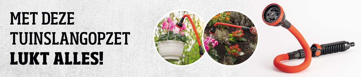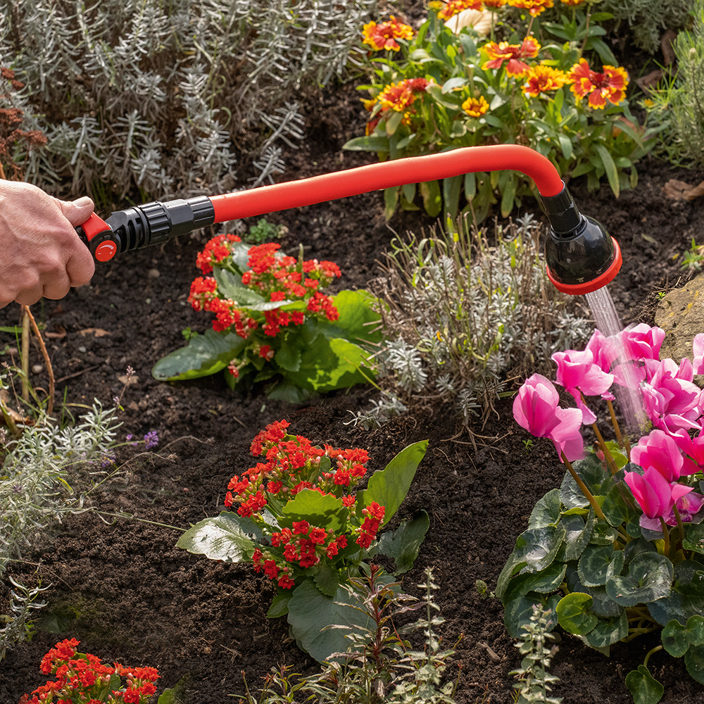 Met het flexibele opzetstuk geeft u uw planten en borders nog handiger water. Aan de ene kant is de 60 cm lange, flexibele slang erg praktisch voor de planten, die water bij de wortel moeten krijgen in plaats van van bovenaf. Aan de andere kant kunt u hem in de tuin plaatsen om de FLEXIBELE TUINSLANGOPZET de border te laten sproeien. De slang kan moeiteloos in elke vorm worden gebogen. Met de comfortabele bediening met één hand regelt u traploos de waterhoeveelheid en kiest u gemakkelijk uit 10 straalsoorten. Totale lengte: ca. 75 cm. Slang van roestvrij staal binnenin voor maximaal 6 bar waterdruk. Een onmisbare tuinslang voor bijna elke besproeiingsbehoefte in de eigen tuin!