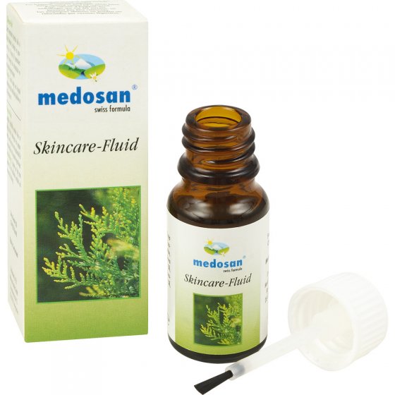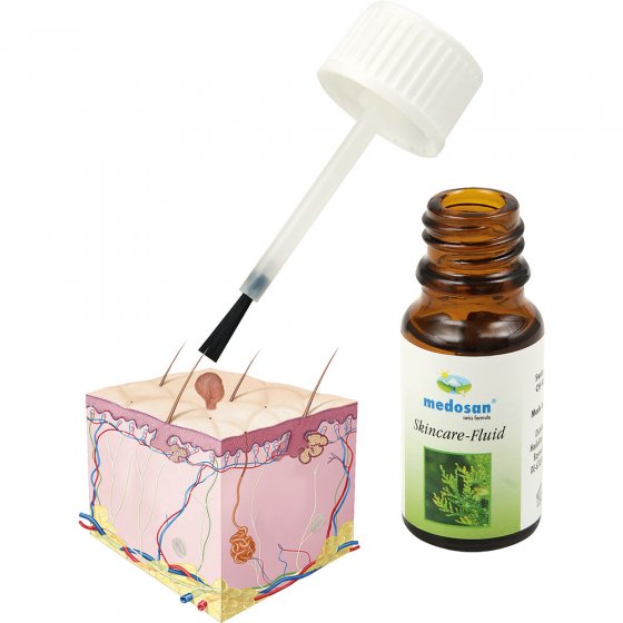 Les verrues pédonculées ou séniles, gênantes et disgracieuses, ne disparaissent pas toutes seules – vous pouvez les traiter avec le FLUIDE SKINCARE. Cette nouvelle teinture contient des huiles essentielles précieuses de thuya, arbre à thé, eucalyptus et menthe poivrée, toutes connues depuis longtemps pour leurs propriétés antiseptiques. Mode d'emploi : mettre quelques gouttes 2 fois par jours sur les endroits à soigner et masser légèrement. Flacon de 10 ml.