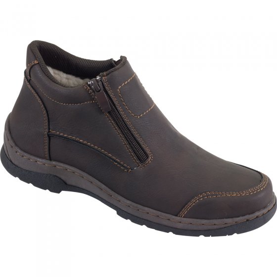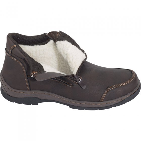 Ces BOTTINES À FERMETURE AVEC DOUBLURE CHAUDE au look sportif possèdent de nombreux avantages ! L'empiècement stretch sur le cou-de-pied et la tige au matelassage souple assurent un maintien agréable, tandis que les fermetures éclair latérales facilitent l'enfilage. La doublure en fourrure synthétique douce assure un maximum de confort. En similicuir facile d'entretien, ces chaussures sont à la fois souples et robustes. La semelle intérieure possède un rembourrage doux, la semelle extérieure antidérapante vous offre plus de sécurité. Des surpiqûres originales viennent accentuer le look moderne de ces bottines, dont l'excellent rapport qualité/prix ne manquera pas de vous étonner !