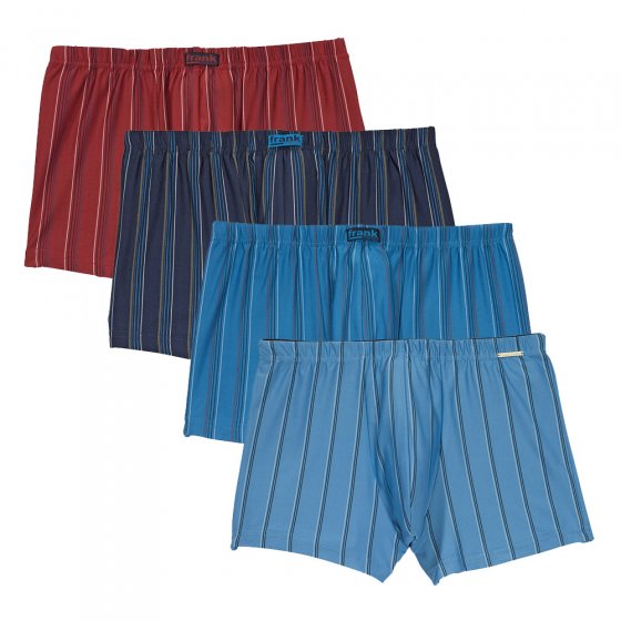 La microfibre fine est ultra respirante et hypoallergénique. Grâce à l’effet stretch de leur matière, ces boxers classiques sont particulièrement élastiques et soyeux : leur coupe et leur confort de mouvement sont également parfaits ! Rien à redire au niveau du look : ces 4 boxers en véritable fil teint à rayures vous sont proposés dans trois couleurs: 2 x bleu marine, 1 x bleu clair, 1 x rouge brique. Profitez de notre offre avantageuse pour faire votre stock de boxers « rafraîchissants » !• Finitions très soignées avec élastique sous tunnel, bas des jambes lisse et devant doublé. 92% polyester (microfibre), 8% élasthanne, lavables en machine