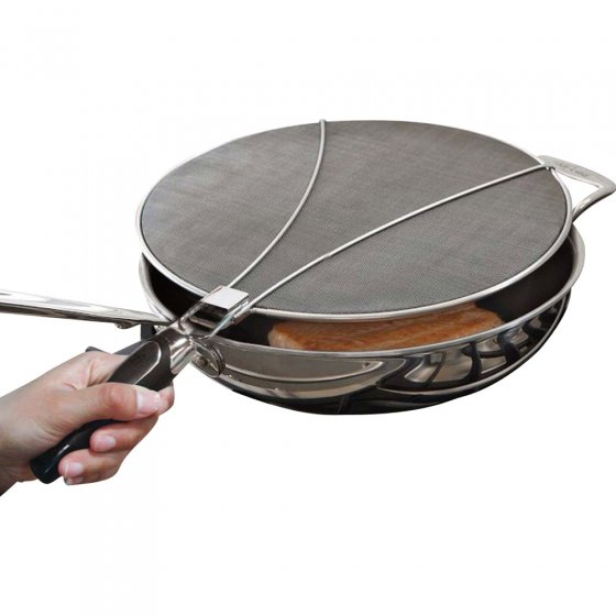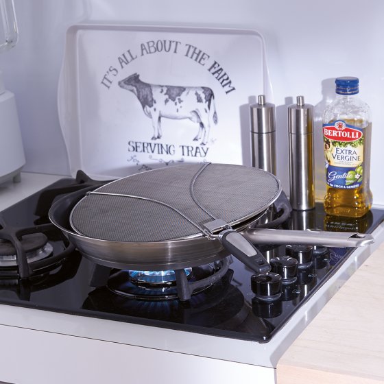 L’ail, les oignons, les viandes saisies et le poisson peuvent désormais revenir au menu, sans craindre que votre intérieur ne sente pendant plusieurs jours : ce COUVERCLE DE PROTECTION ABSORBANT LES ODEURS avec filtre à charbon intégré absorbe toutes les odeurs de cuisson et permet même de réduire les odeurs durables ! Il évite les projections de graisse, laisse s’échapper la vapeur et se range facilement dans un tiroir grâce à la poignée rabattable. Dimensions: Ø env. 29 cm, longueur avec poignée : env. 44 cm. Enfin un plan de cuisson bien propre, un air assaini et des plats parfaitement croustillants !